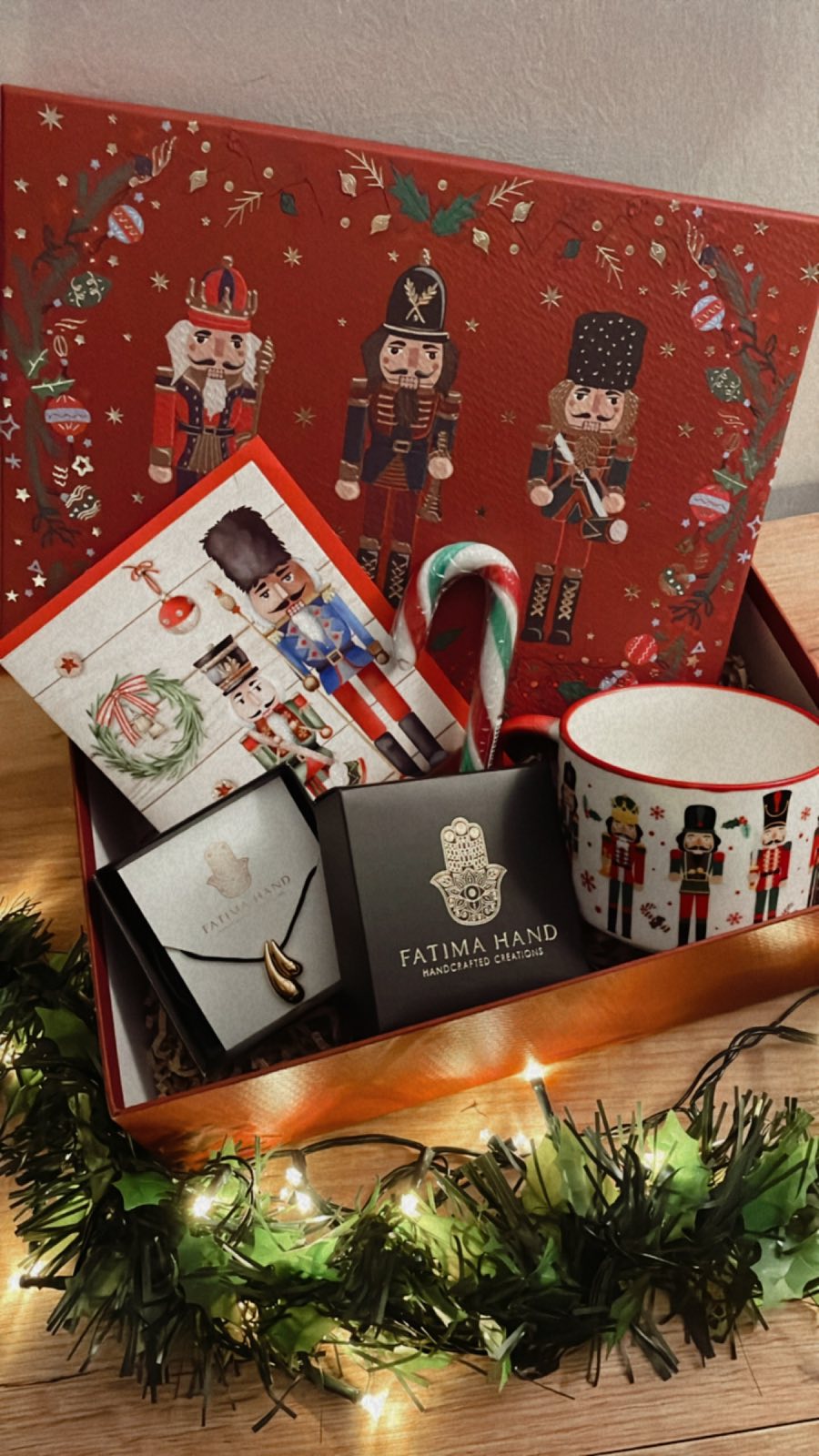 Χάρτινο κουτί με καρυοθραύστες 29*21*8 με μία κούπα χριστουγεννιάτικη.
